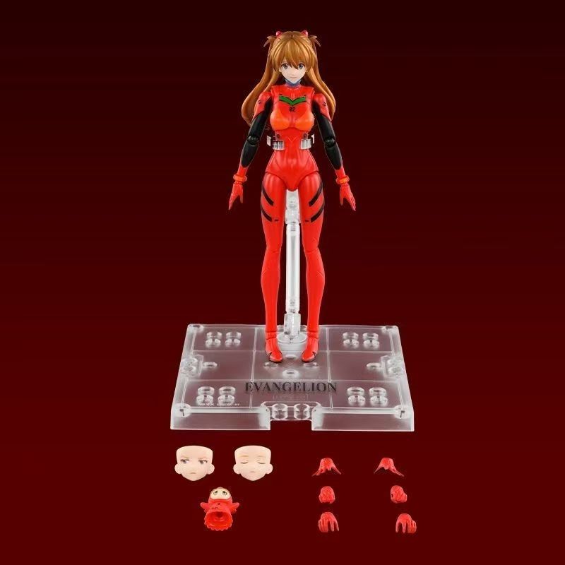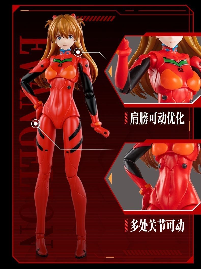 The Blokees Fantastics Series Action Edition Asuka Langley Soryu is a large-scale model kit built using a hyper-articulated framework body. The figure stands over 17cm tall and features multiple hands, alternate faceplates, a guitar, a microphone and stand, and an articulated stand.