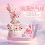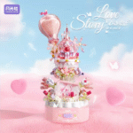 - Whimsical Romantic Design: Features a stunning pink castle, a heart-shaped hot air balloon, and lush floral accents, capturing the essence of a dreamlike “Love Story.”