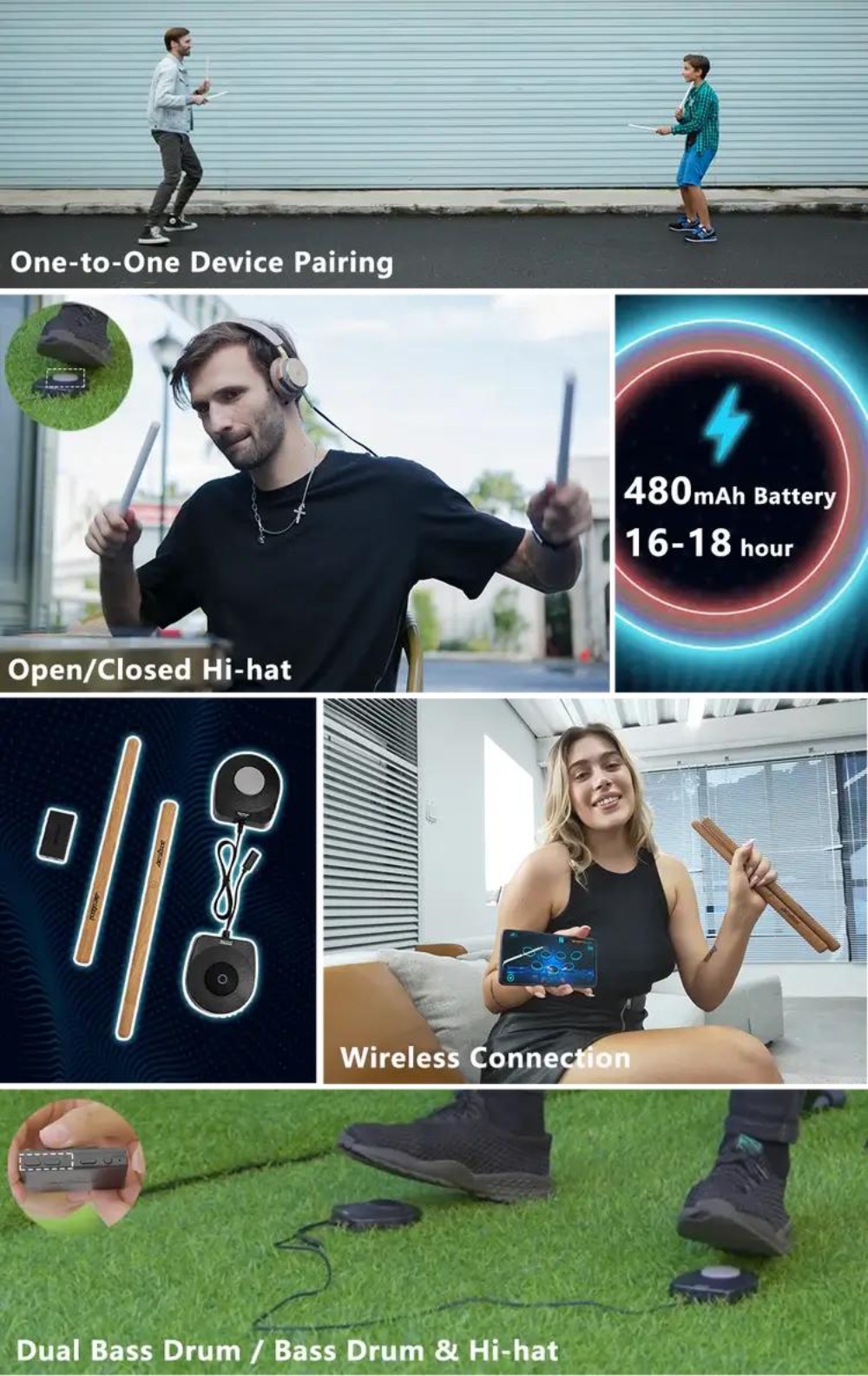 Support Bluetooth connection for drumming without constraints.