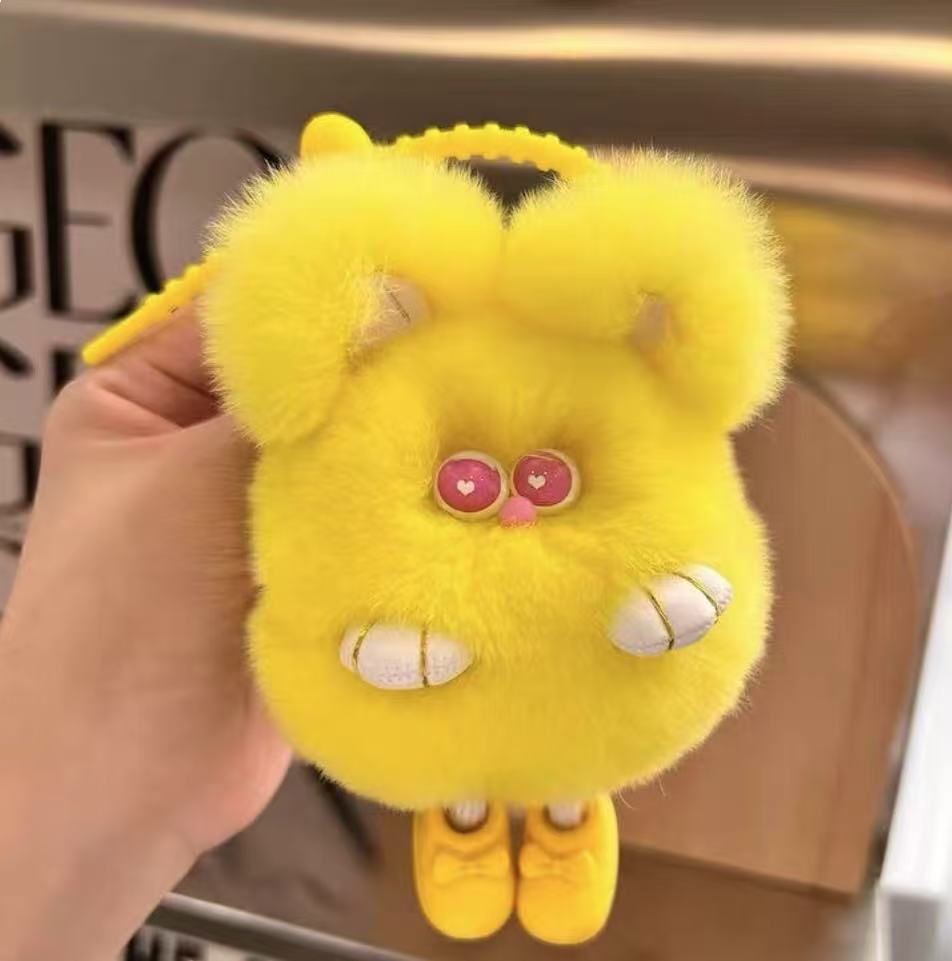 ✨ Soft & Playful Luxury: Crafted from ethically sourced, farm-raised real rabbit fur with eco-friendly dyeing. Standing at 5.2 inches (13 cm) tall, its ultra-soft texture and movable limbs create a lifelike, adorable wobble — never stiff!