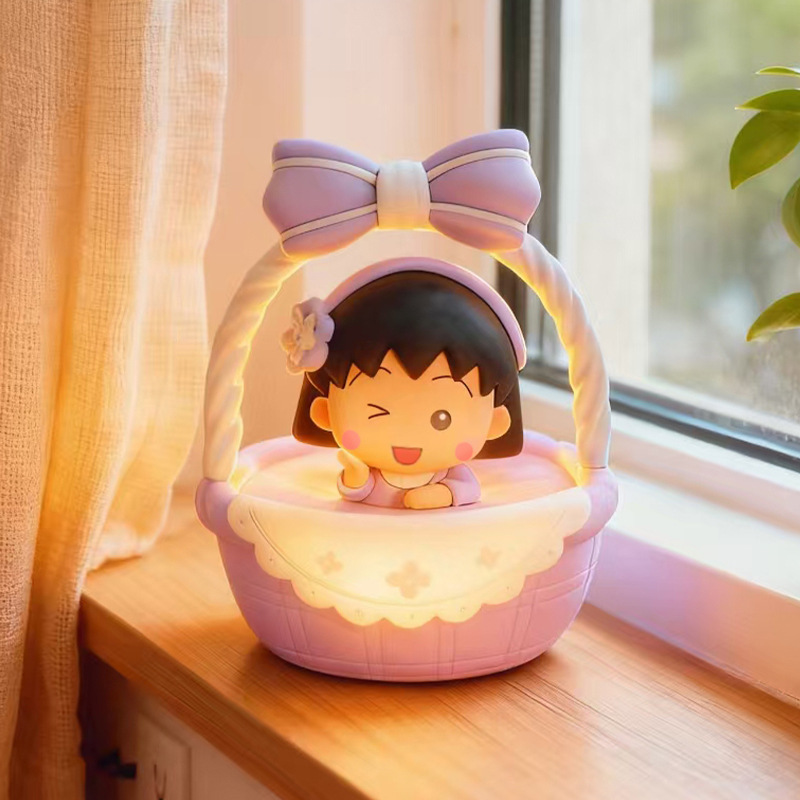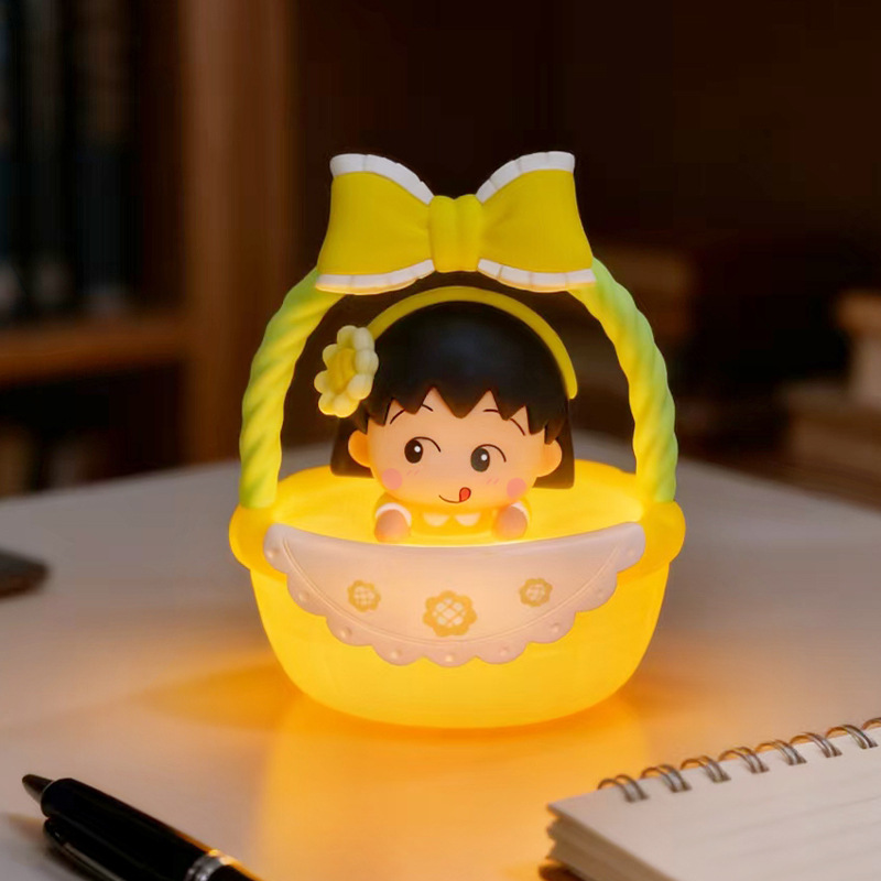 Chibi Maruko Chan’s the Flower Basket Girl gently pats the night light figurine