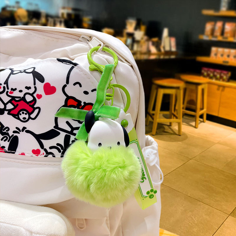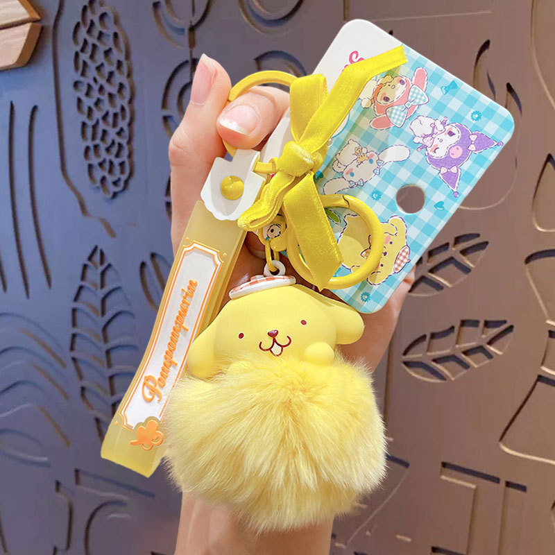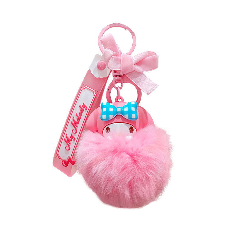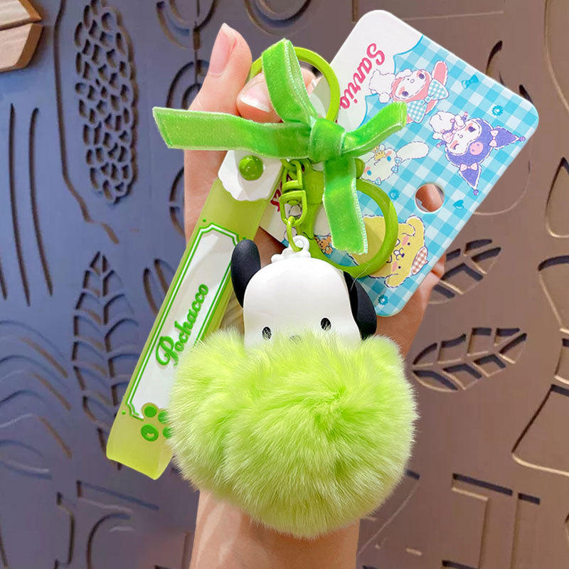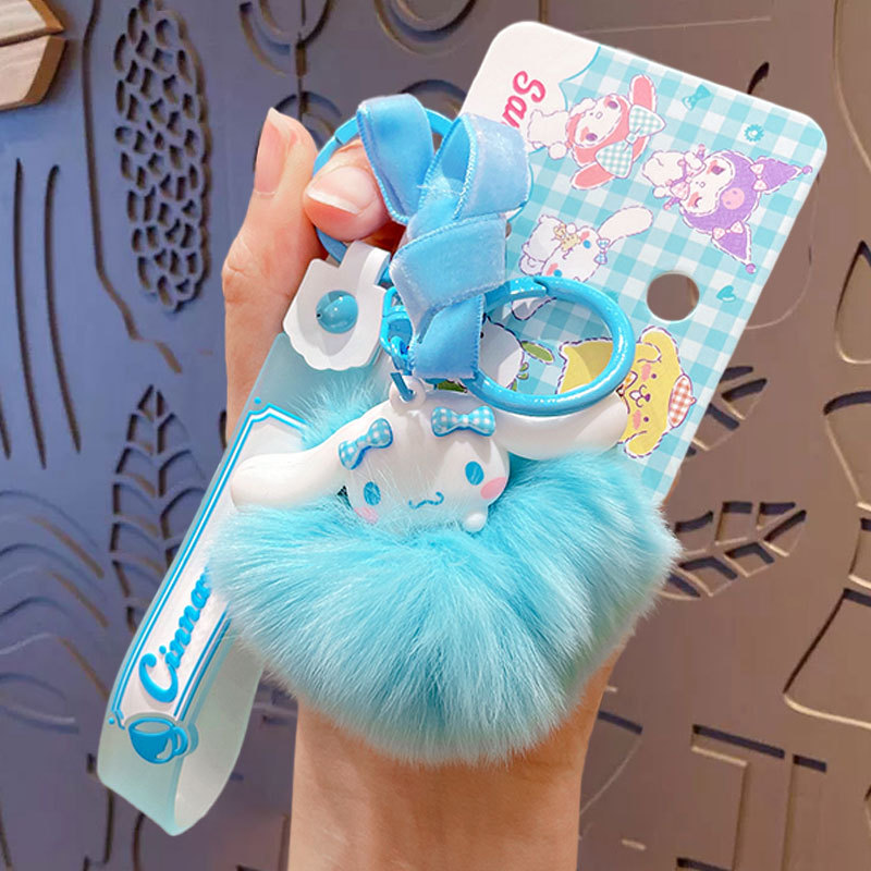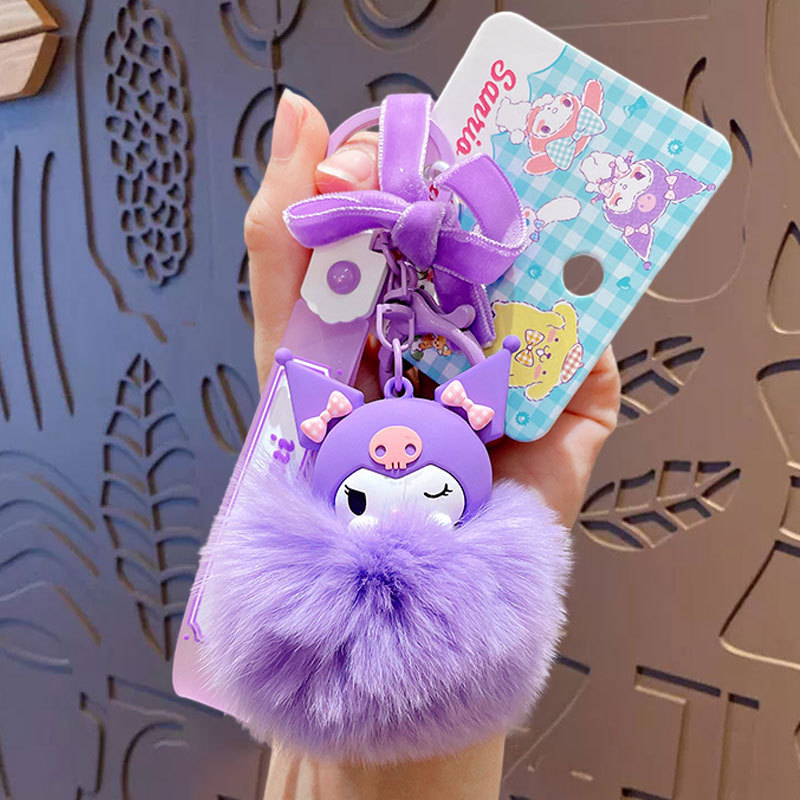 Genuine cartoon Sanrio pom-pom keychain, creative Kuromi cloth, Cinnamoroll car and schoolbag pendant keychain