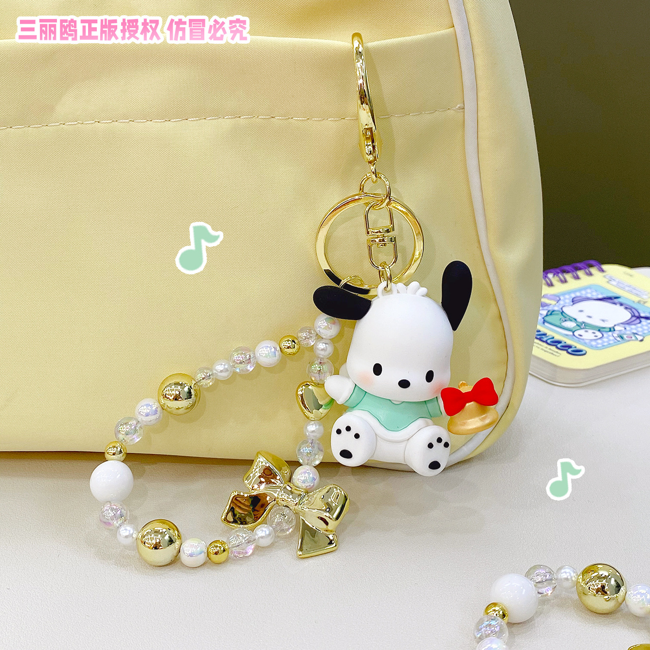 Material: Main body is PVC , paired with acrylic beads and metal accessories (hook, chain decoration)