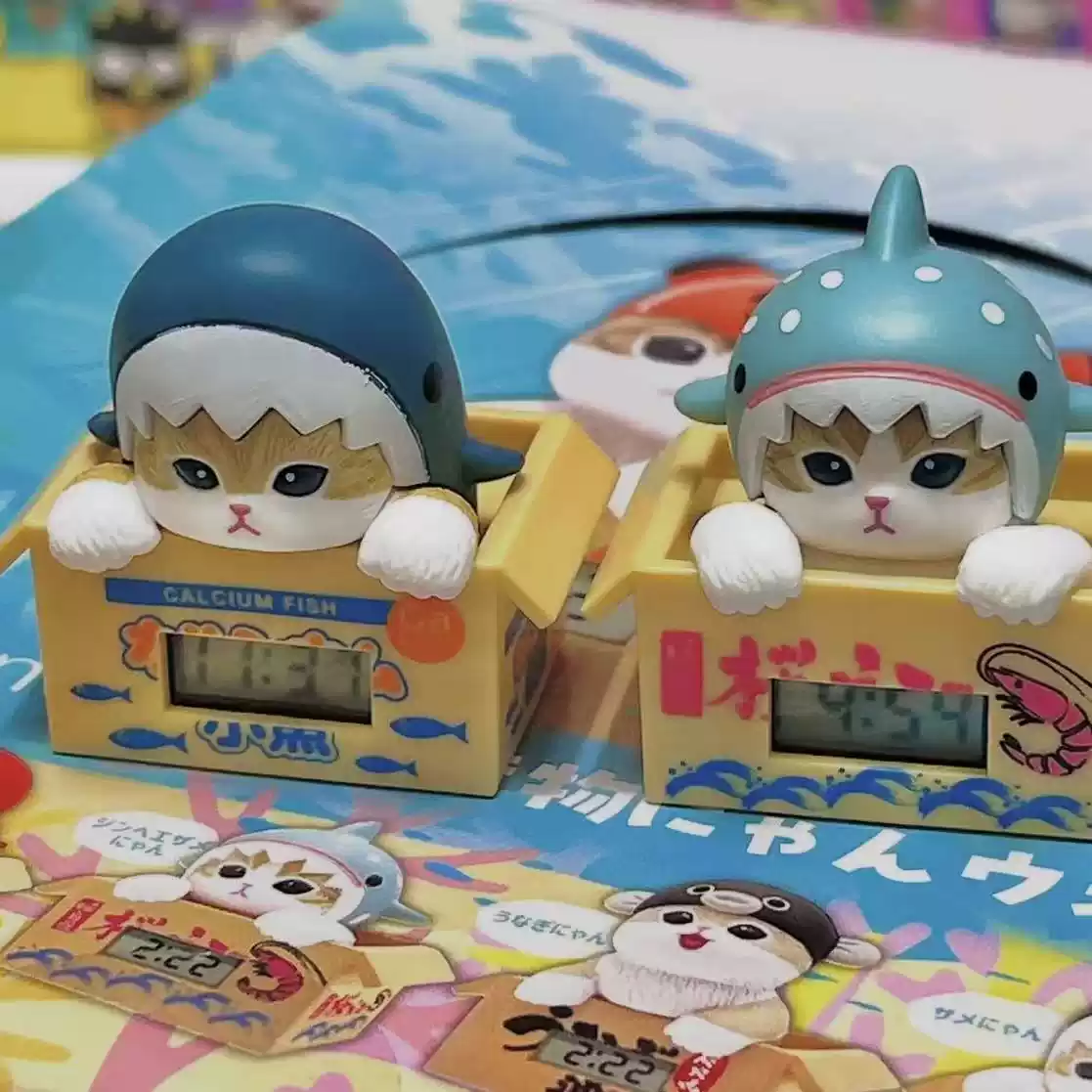 Japanese Official Kitan “Shark Cat” Mofusand Ocean Creatures Wrapped Clock Swing Figure Gashapon