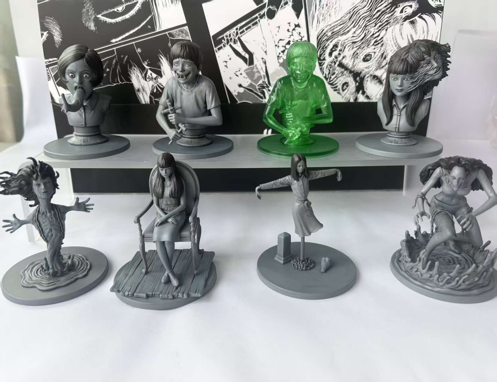 4、7 styles: Tomie Chair, Tomie Mutation, Tomie Bust, Soichi, Fuchi, Slug Girl, Scarecrow.