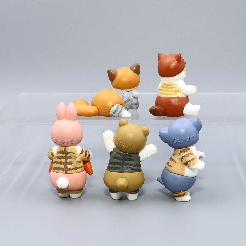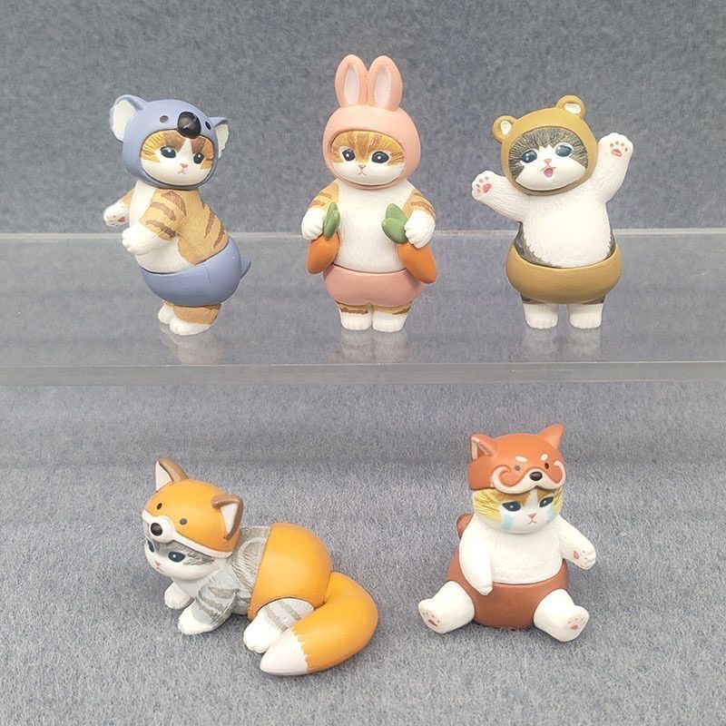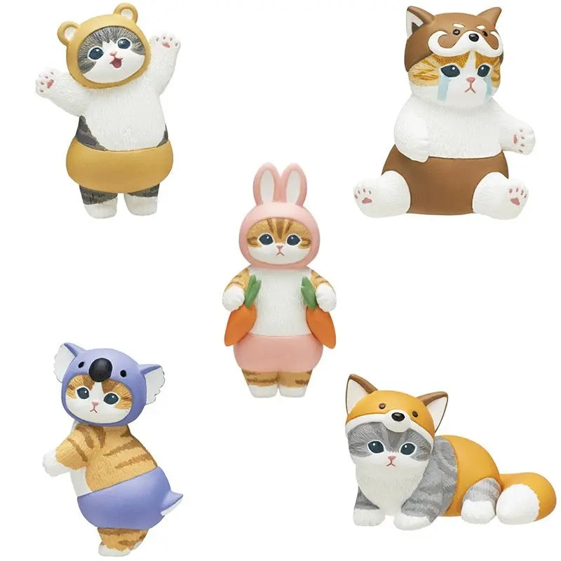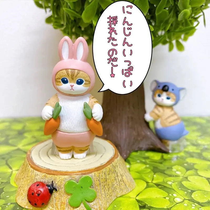- Rabbit: A striped cat in a pink rabbit costume holding two carrots.