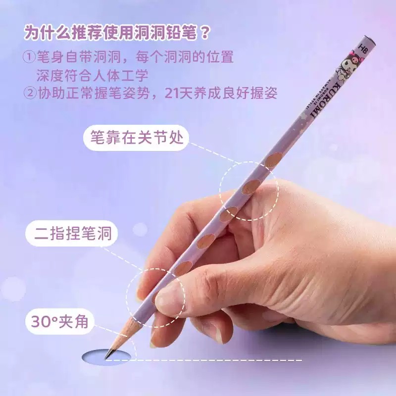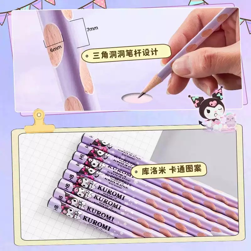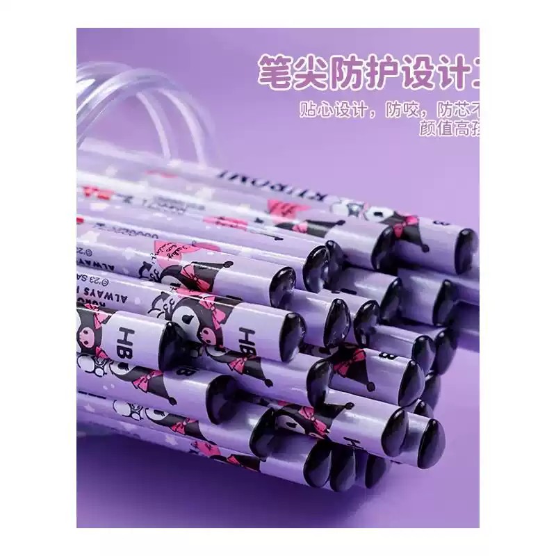 Kuromi HB Glow-in-the-Dark Eraser-Top Hole Pencil Set