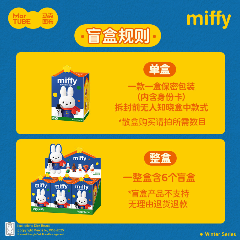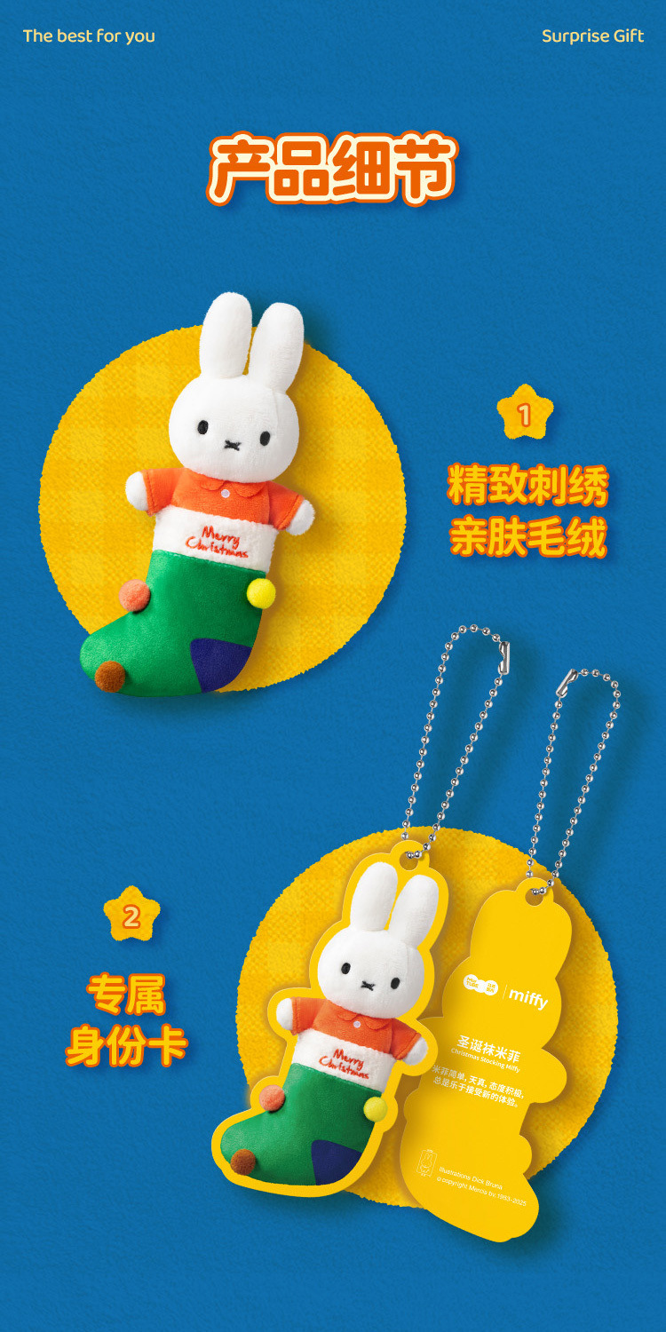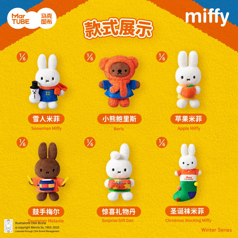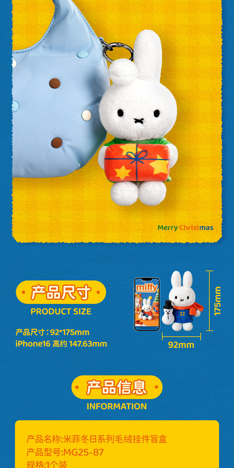 This is an officially licensed Miffy Winter Series plush keychain blind box.
