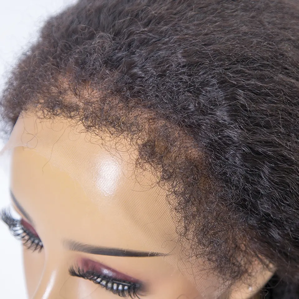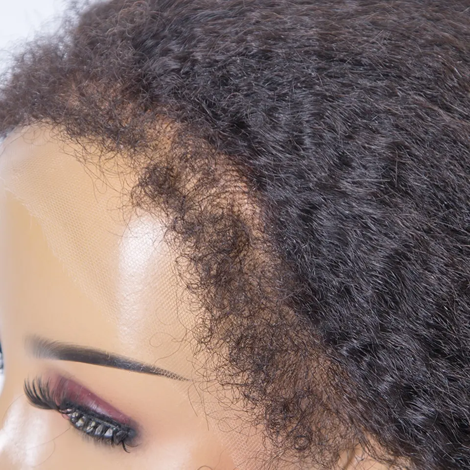 New 4c Textured Hairline Wigs 13×4 Lace frontal Curly Baby Hair Natural Edges Kinky Yaki Straight Human Hair Wigs