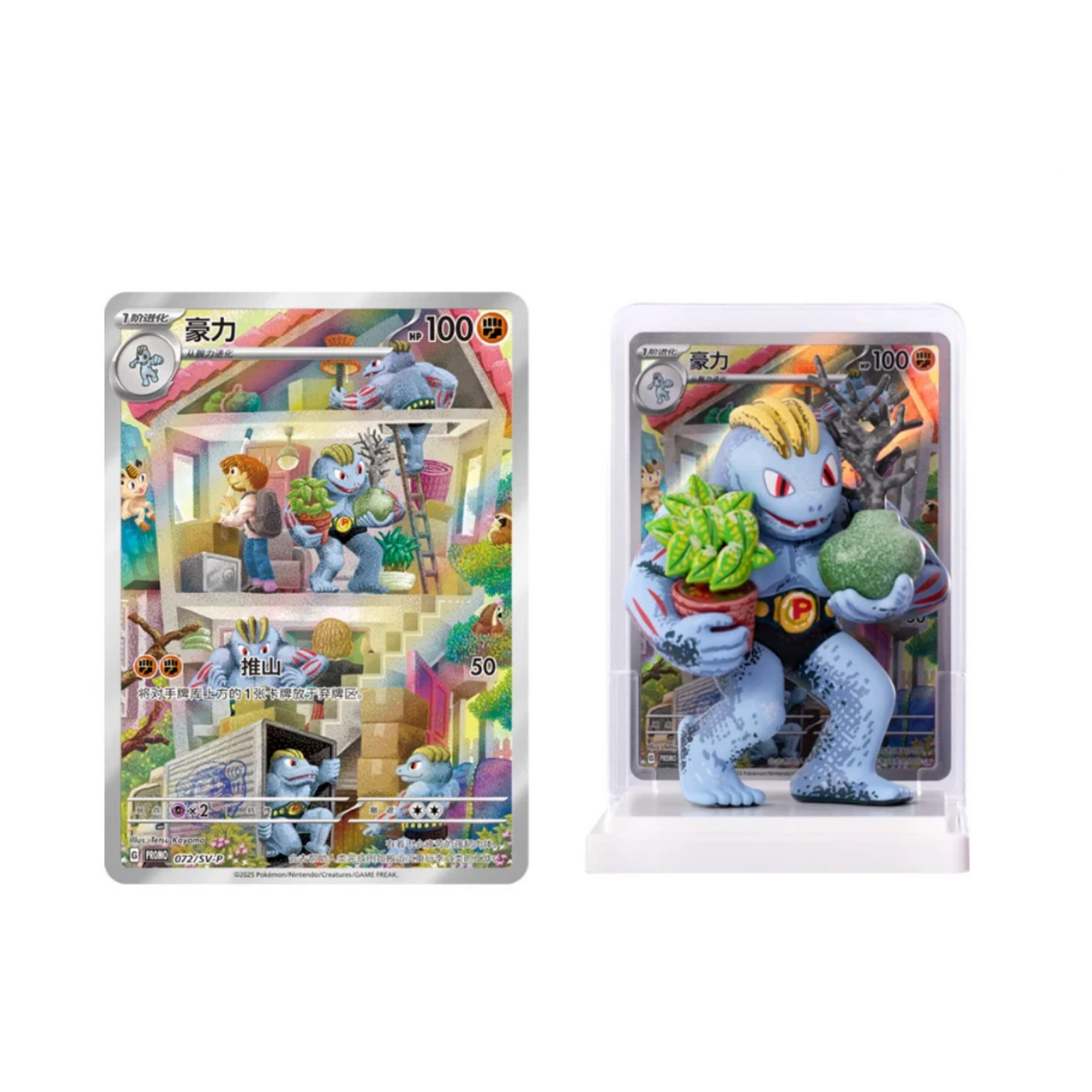 The figure and card can be combined to form a display stand.