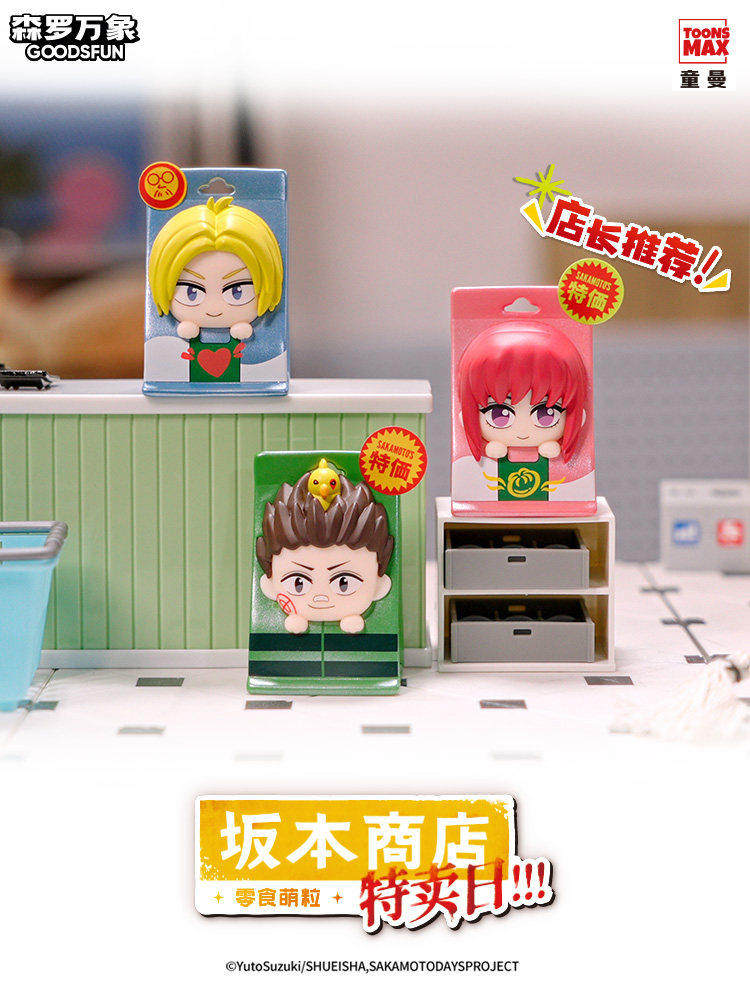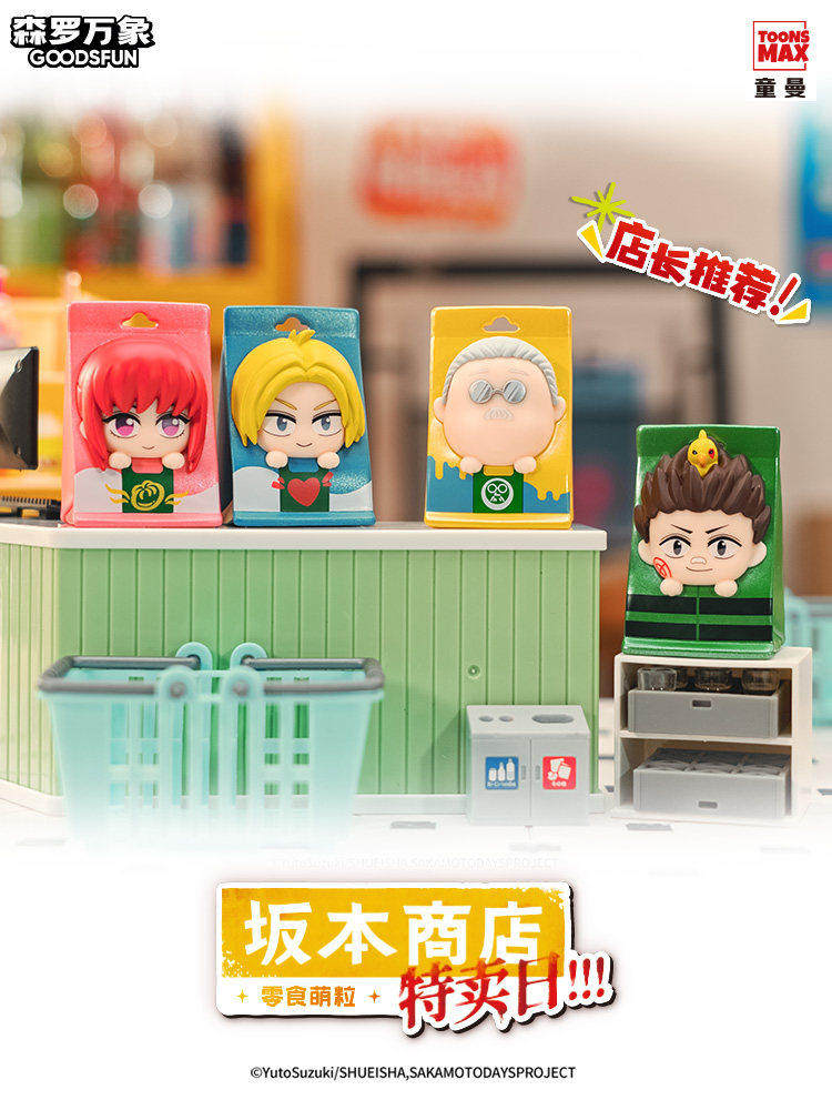 Officially licensed Sakamoto Days mini figures blind bag, classic snack store cute style for collection and display.