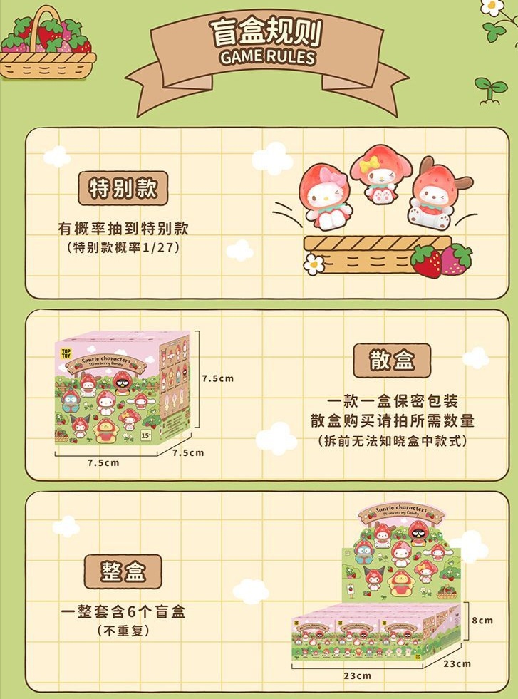 Product Name: Sanrio Family Strawberry Candy Series MINI Keychain Blind Box