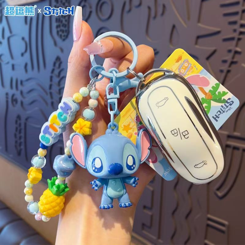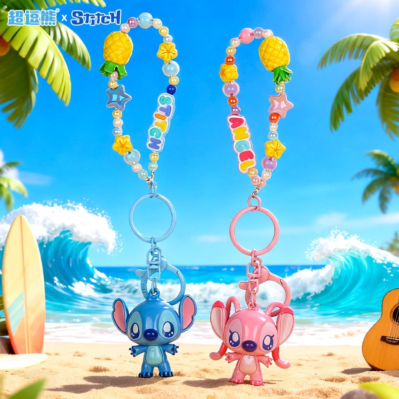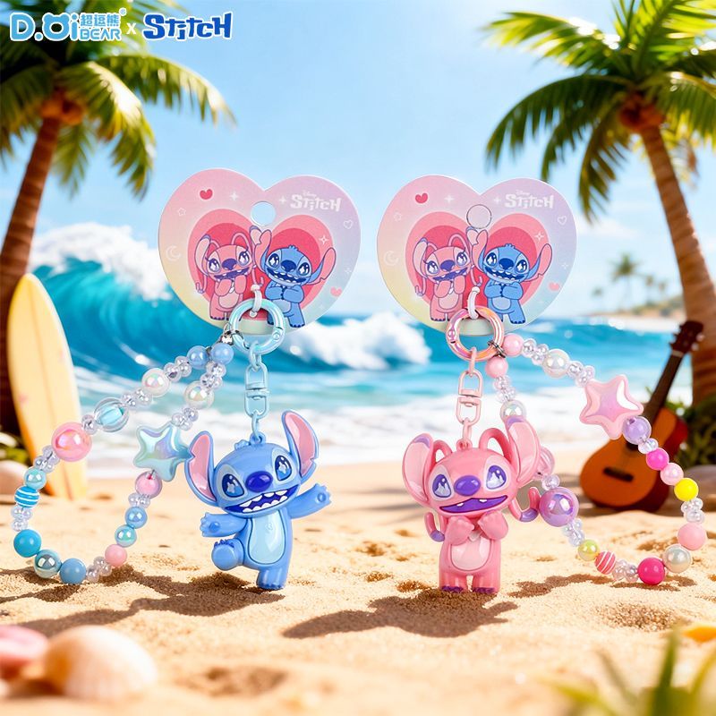 Product Name: Stitch & Angel Cute Beaded Keychain, Creative Stitch Car Bag Keychain Doll Pendant