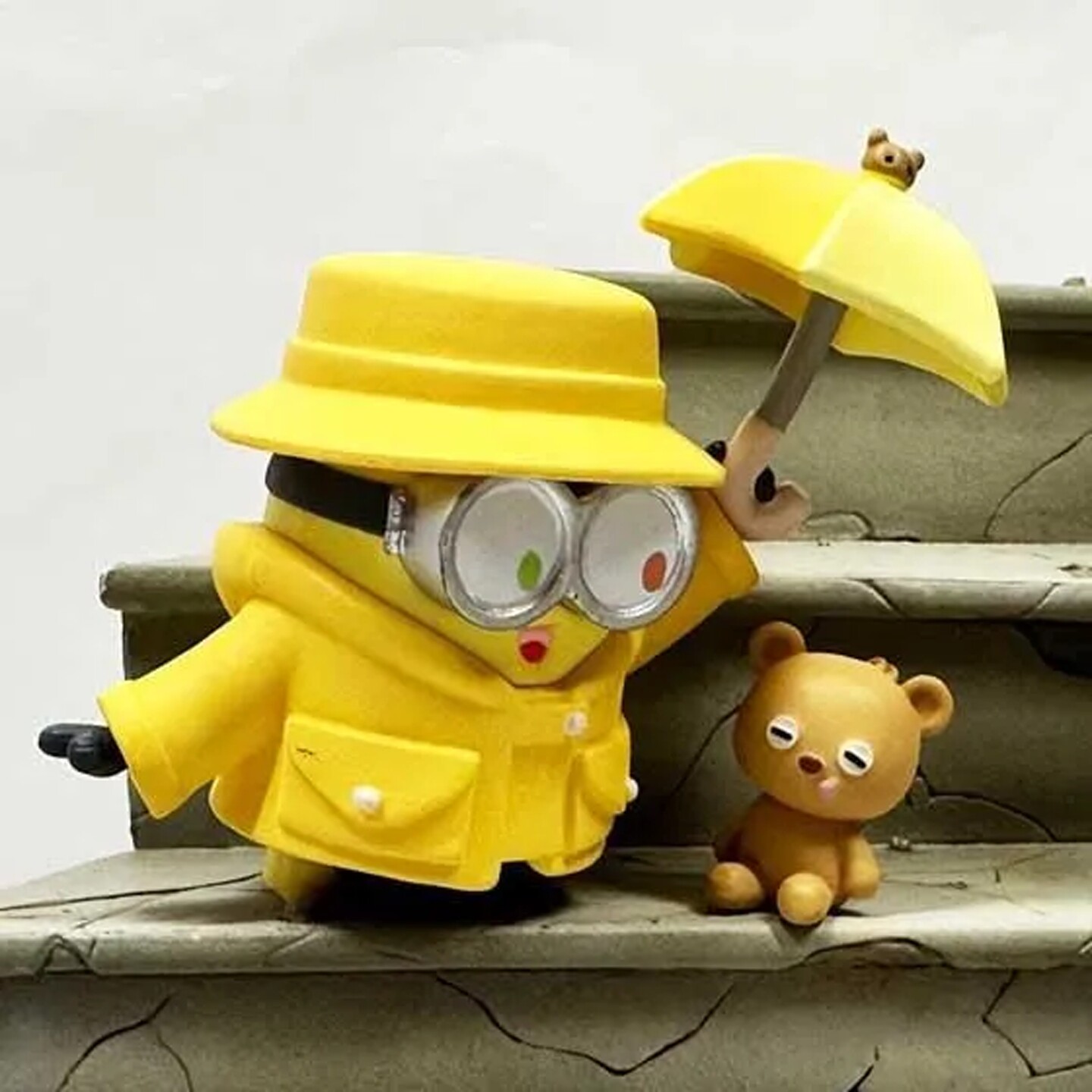 1. Rainy Day Stroll (Bob in raincoat with umbrella and Tim)