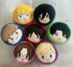Official licensed Attack on Titan plush blind box by Tapioca, featuring 7 adorable macaron-shaped character designs.