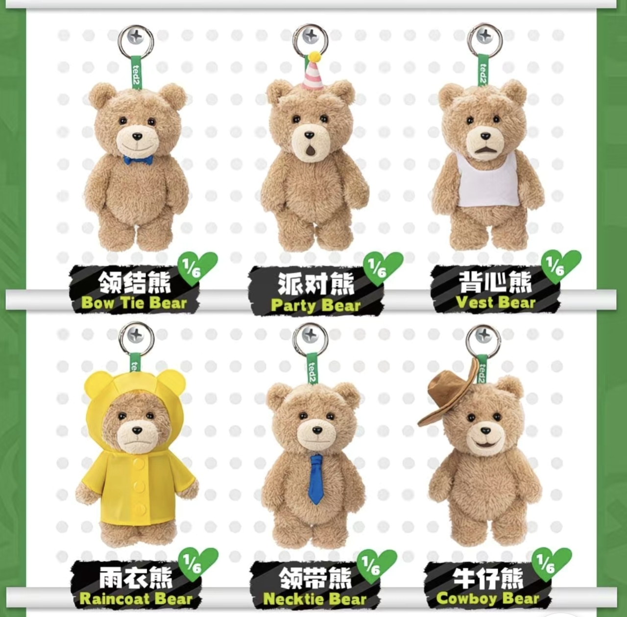 - Standard Designs: 1:6, Bow Tie Bear, Party Bear, Vest Bear, Necktie Bear, Raincoat Bear, and Cowboy Bear.