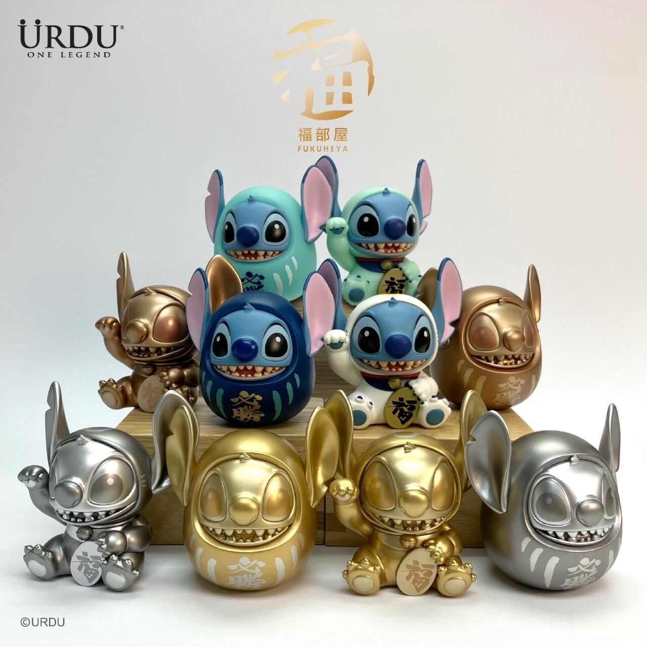 “Fukuheya Lucky Blindbox Series 2 – Stitch” from URDU Given their popular character (Stitch), their unique blend of Japanese culture, and the blind box format, these figures are highly collectible for and Lilo & Stitch fans, as well as collectors of designer toys and Japanese cultural items.