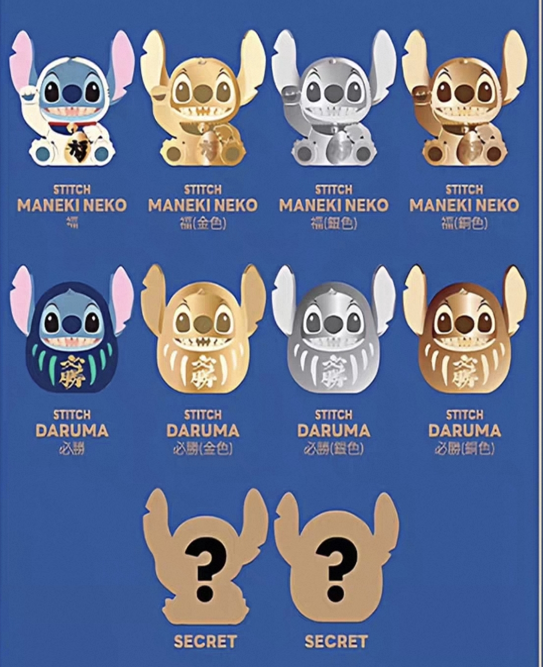 - Daruma Stitch (blue, gold, silver or bronze)