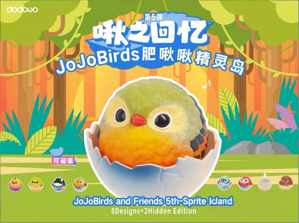 Product Specifications: Brand: Dodowo Series: Jojobirds and Friends Vol. 5 (Sprite Island) Material: PVC / ABS / Magnet Dimensions: ~50-60mm height Quantity: Single Blind Box