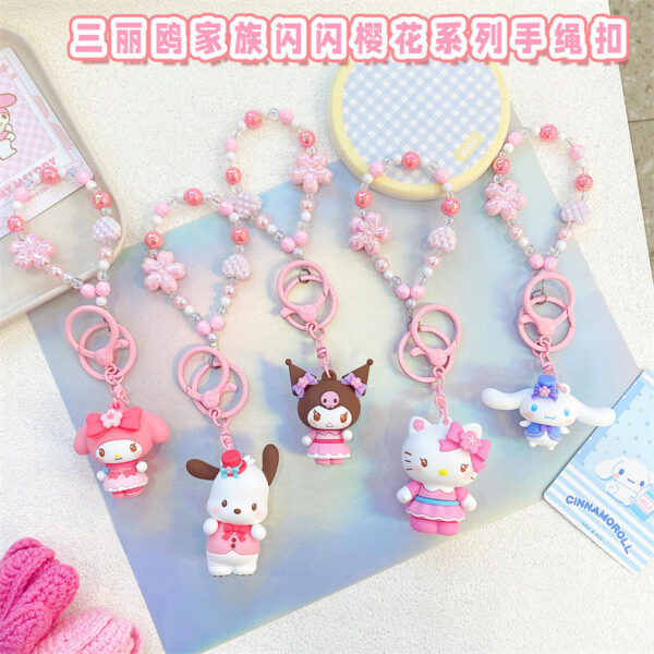 Genuine Sanrio Family Shining Sakura Series Hello Kitty, Kuromi, Cinnamoroll Keychain and Schoolbag Pendant